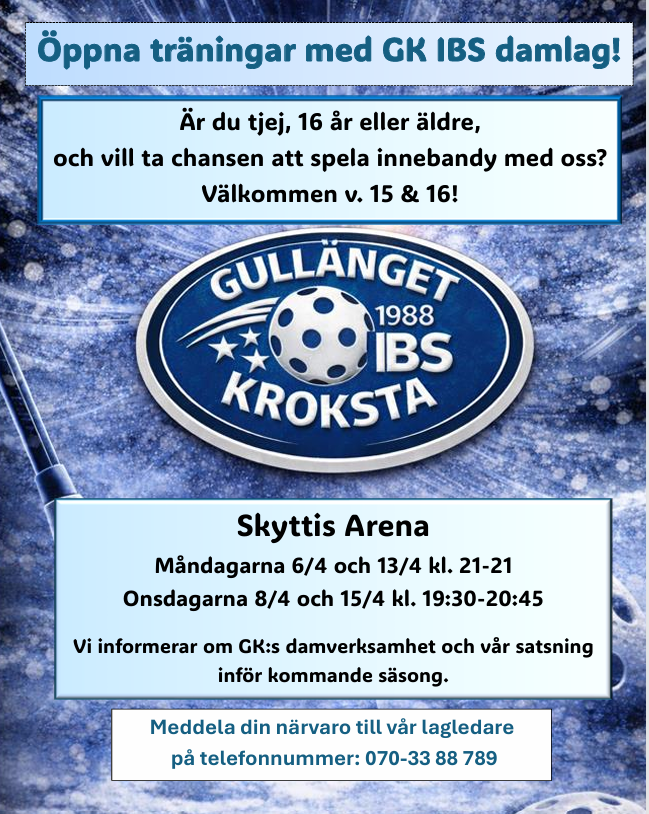 Klicka på bekräftelselänken i det mejl vi skickat dig för att börja ta emot uppdateringar från Gullänget-Kroksta IBS Damlaget.