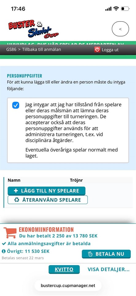 Klicka på bekräftelselänken i det mejl vi skickat dig för att börja ta emot uppdateringar från Grossbol-Skived AIF 86 Pojkar 10.