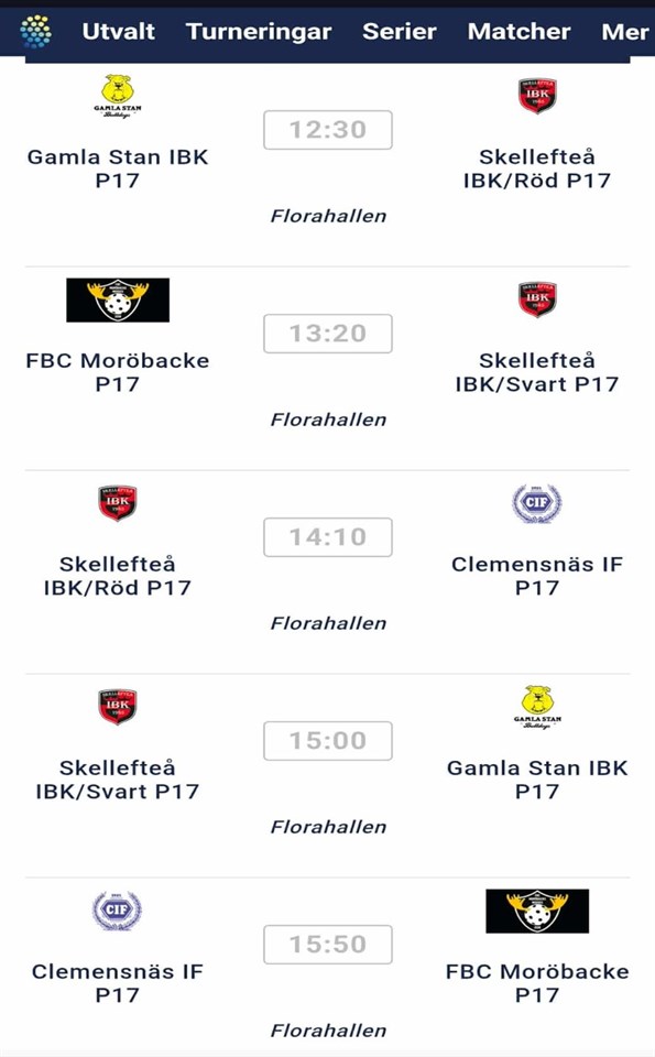 | Skellefteå IBK/Röd P17 (hemma) | 15 feb, 12:30 |