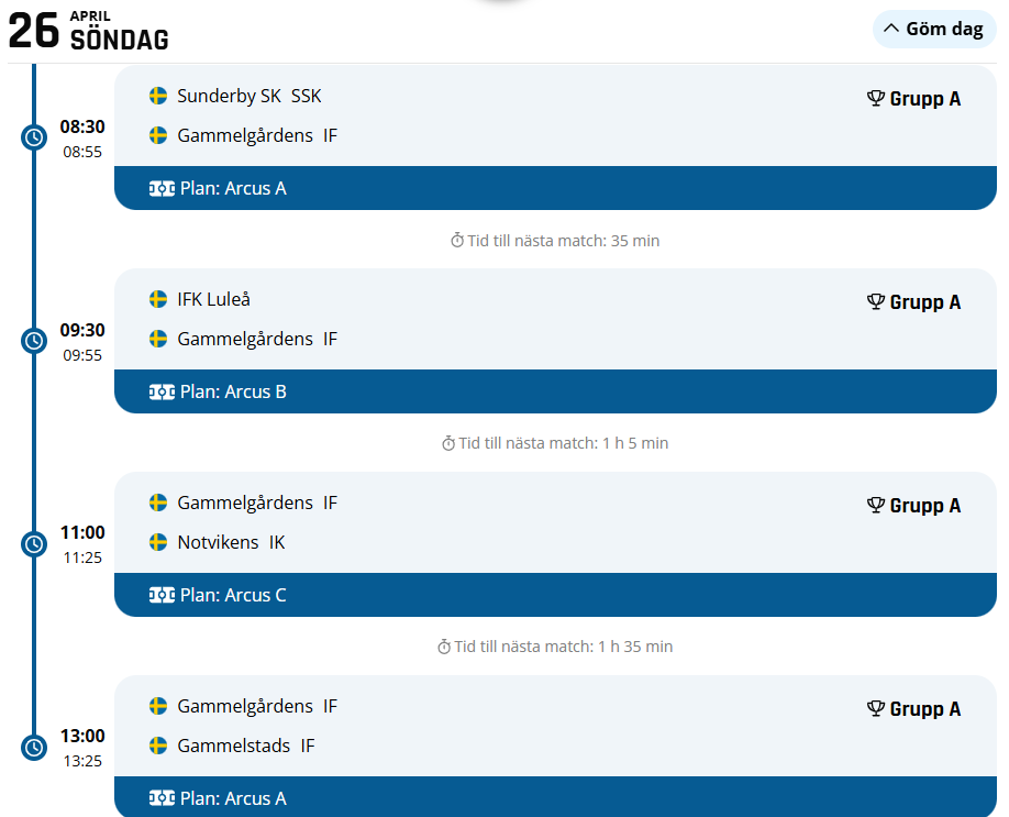 | Gammelstads IF (hemma) | 26 apr, 13:00 |
