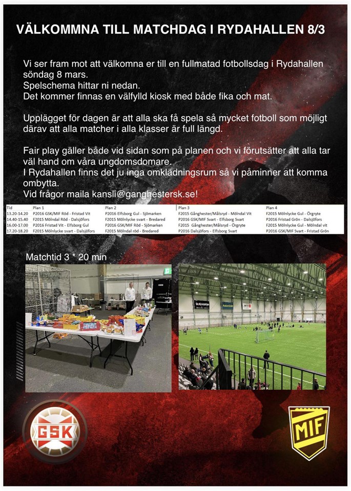 | Föräldramöte F14/15/16 | 10 mar, 17:30 |