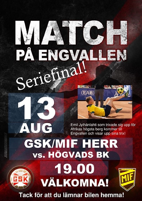 På onsdag nästa vecka den 13 augusti spelar vårt herrlag seriefinal på Engvallen.