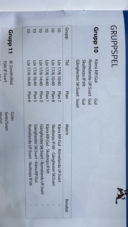 Vi spelar i grupp 8 och i grupp 10. Vi mixar spelare mellan de båda grupperna.