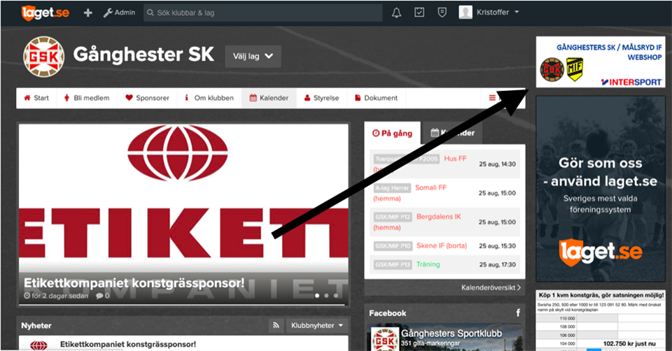 Nu finns det på vår hemsida en direktlänk till Intersports webshop för våra föreningskläder. Ni hittar den längst upp till höger på sidan som bilden visar. Gå gärna in där och beställ era träningskläder som sedan hämtas ut på Intersport knalleland.