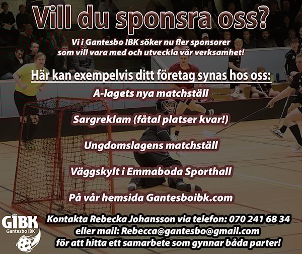 Vi växer så det knakar - därför söker vi nu fler sponsorer som vill vara med och utveckla vår verksamhet. Hos oss finns det många sätt där ditt företag kan synas och hitta ett samarbete som gynnar båda parter. Tveka inte att höra av dig till Rebecka Johansson på 070 241 68 34 eller mail: Rebecca.gantesbo@gmail.com för att hjälpa oss att växa ännu mer som förening!