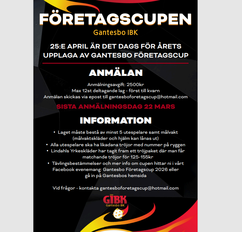 Vid frågor eller anmälan - kontakta gantesboforetagscup@hotmail.com!