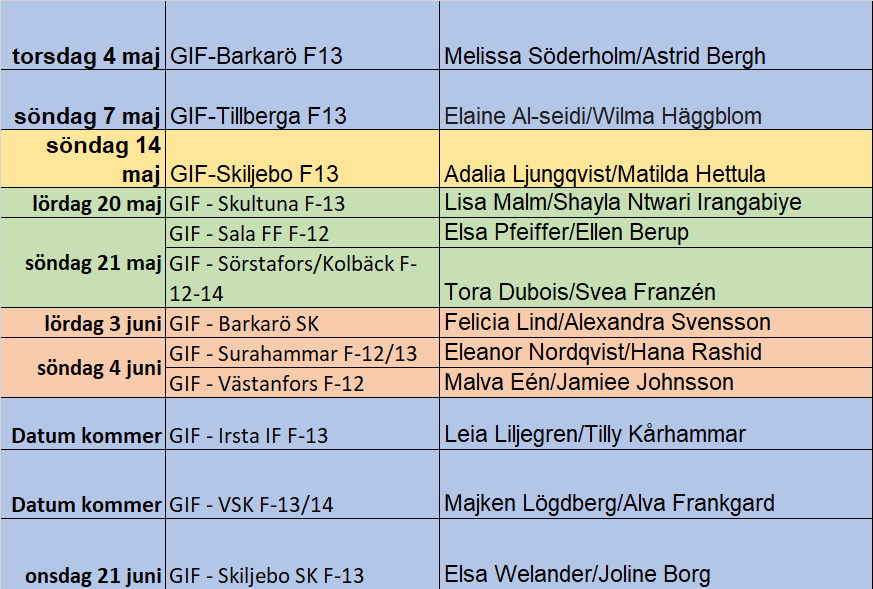 Här är vårens kioskschema. Som ni ser är det två matcher runt Aroscupen som inte fått något datum just nu, men det kommer uppdateras i kalendern.