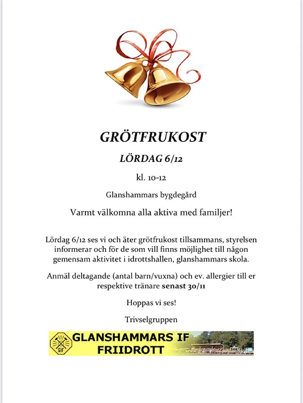 Här kommer inbjudan till föreningens årliga grötfrukost. I år i Glanshammars bygdegård.