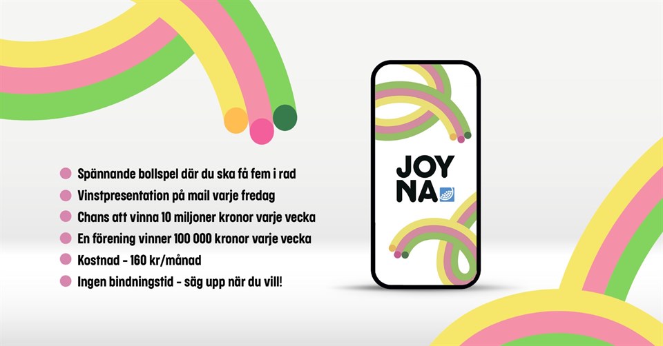Hej! Som vi tidigare har informerat om har vår förening bestämt oss för att satsa på det nya prenumerationslotteriet JOYNA. För att kunna sälja från 3:e april behöver man registrera sig och vi önskar att du som medlem (barn under 18 år blir det förälder som registrerar) är med oss i detta arbete. Vår förening har valt att fördela behållning per prenumeration enligt följande: 50% går till föreningen och 50% går till laget Exempel: 200 medlemmar x 2 prenumeranter = 400 prenumerationer 400 prenumerationer x 50 kronor/månad = 20 000 kronor/månad 20 000 kronor/månad x 12 månader = 240 000 kronor/år Per lott blir det 25 kr till laget och 25 kr till föreningen, vilket ger 300 kr till laget och 300 kr till föreningen per prenumeration/år. Här kommer registreringslänken för JOYNA. Klicka på länken: https://admin.folkspel.se/invitation/?inviteId=362b054f-54dd-ee11-913c-005056809a6f