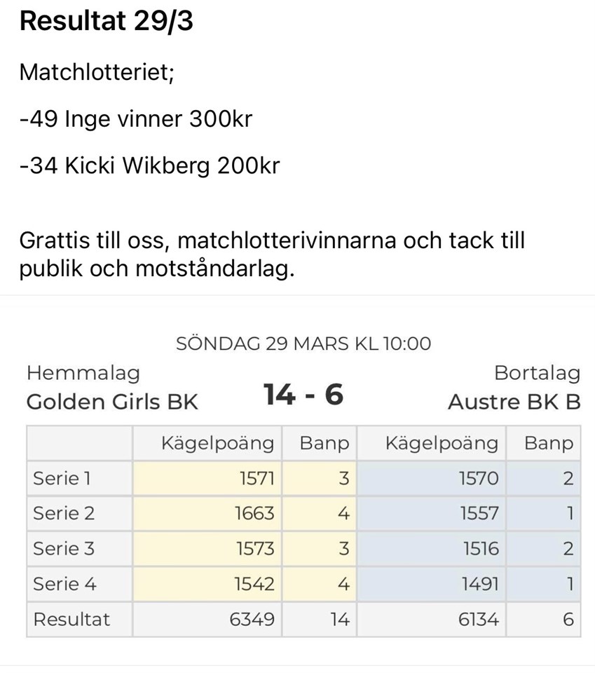 | 1. | (23) | Mulde Varpa Klubb Varpa |