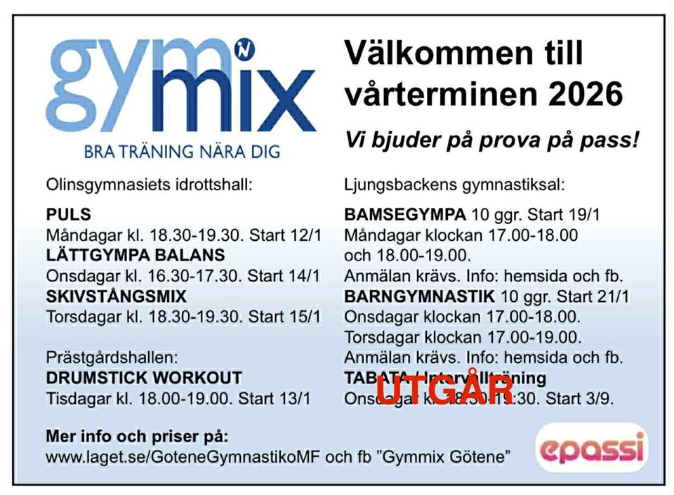 Nya som gamla medlemmar hälsas välkomna till en ny härlig träningstermin med Gymmix Götene!