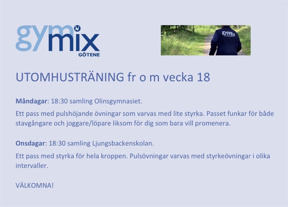 Välkommen på utomhusträning fr o m vecka 18. Götene Gymnastik o MF 30 apr 2023 0kommentarer