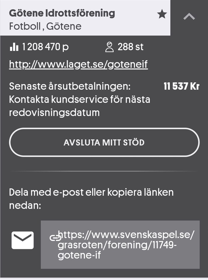 Årets Gräsrotsutdelning från Svenska Spel gav 11 537 kr. Tack alla som valt Götene IF som sitt val och stödjer föreningen. Har du ännu inte valt det så gå in och gör det. Det är enkelt och man behöver inte göra mer efter det. Ett enkelt sätt att stödja föreningen. Götene IF 14 nov 2019 0kommentarer