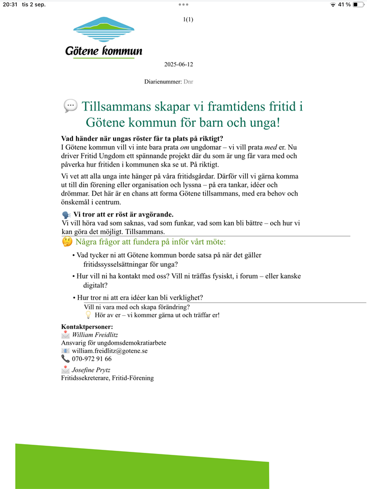 Klicka på bekräftelselänken i det mejl vi skickat dig för att börja ta emot uppdateringar från Götene IF Ungdomsledare.