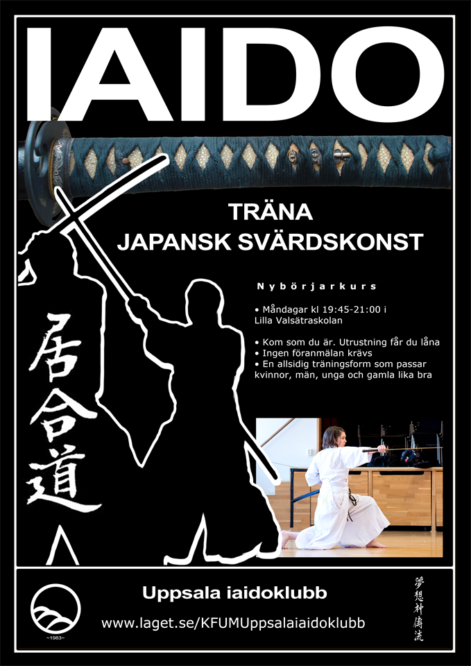 Äntligen är det dags att starta igång en ny termin med Iaidoträning i Bäcklösaskolans (Lilla Valsätraskolans) gympasal. Tiderna är samma som förra året, måndagar mellan 19.45-21.00, med start nu på måndag (21/8). Både nya och gamla medlemmar hälsas varmt väkomna. Öppet intag av nybörjare under hela augusti/september. Sprid gärna information till släkt, vänner, grannar och arbetskamrater så att vi kan bli ännu fler som tränar.