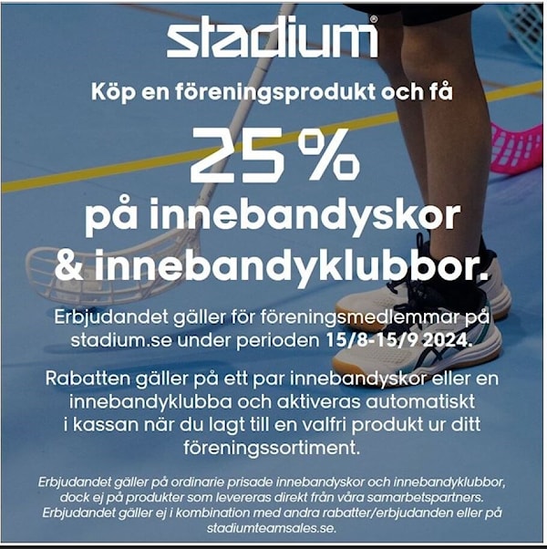 Här kommer ett erbjudande till era föreningsmedlemmar från Stadium gällande Innebandy!