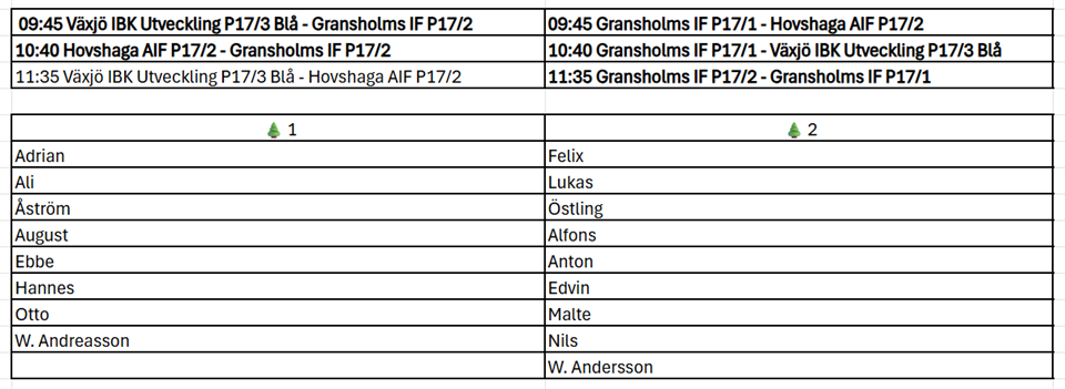 | Gransholm IF P17-2 (hemma) | 14 dec, 09:00 |