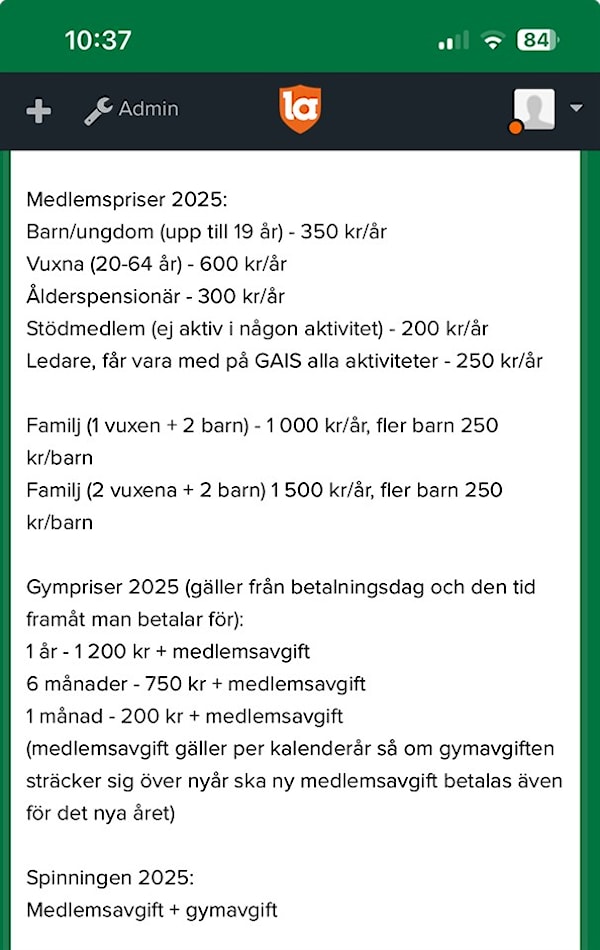 För att vara med på spinningpassen ska man vara medlem och betala gymavgift, går ju att betala gym för bara 6 månader då spinningen håller på ca 6 mån se bild för priser. Boka spinningpassen görs via ”Boka direkt” appen eller via hemsidan "Boka-spinninpass". Passen läggs ut på måndag fm för nästkommande vecka. Passen för vecka 39 och 40 läggs ut på måndag 22/9.