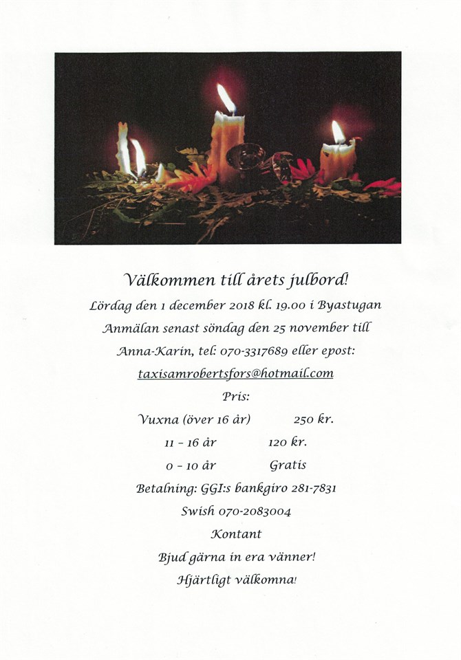 Inbjudan till julbord Intresseförening 16 nov 2018 0kommentarer