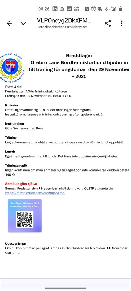 Klicka på bekräftelselänken i det mejl vi skickat dig för att börja ta emot uppdateringar från Gropens IF Bordtennis gul 2.