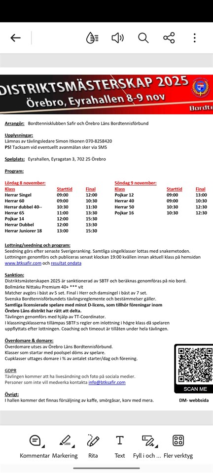 | Div 6 första omgången | 3 nov, 18:00 |