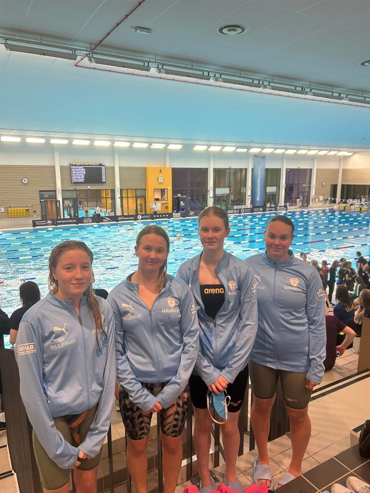 Tjejerna gör sig redo för att avsluta dagen i Eskilstuna med en lagkapp. 4x100m medley