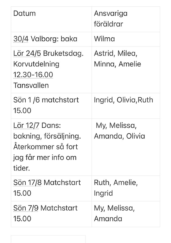 Hoppas ni alla hade en fin Valborg igår. Jag skickade ut ett mail till er alla i tisdags om kommande aktiviteter/ hemmamatcher.
