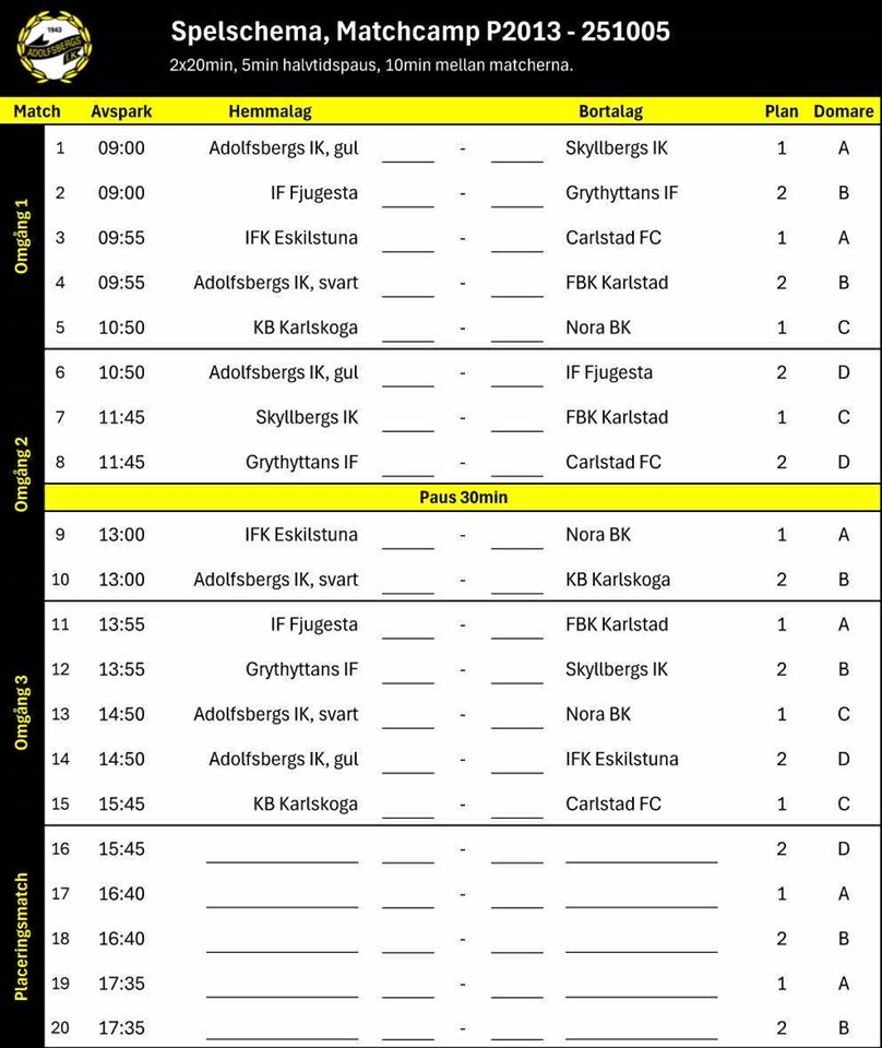 • Spelschema Lugnets IP 5/10