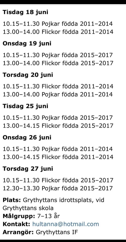Imorgon avgår bussen från Hällefors (Ingo) 12.45, upphämtning vid skolan i Grythyttan ca 12.55. Finns gott om plats i bussen 👍 Vi kommer stanna för mat på hemvägen. Vädret ser ostabilt ut, kan vara bra med jacka eller liknande till uppvärmning och ombyte till hemresan. Påminner även om att benskydd är ett kravpå match! Ses imorgon P-15 8 jun 2024 1kommentar