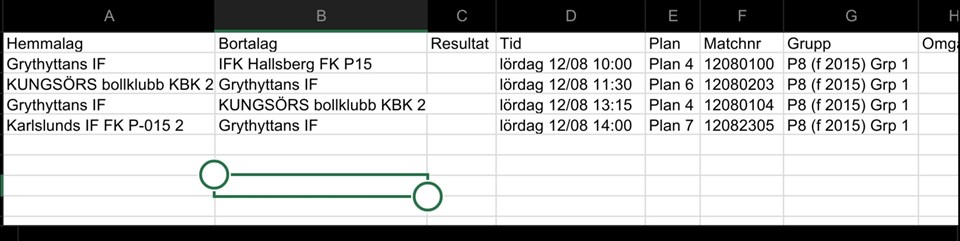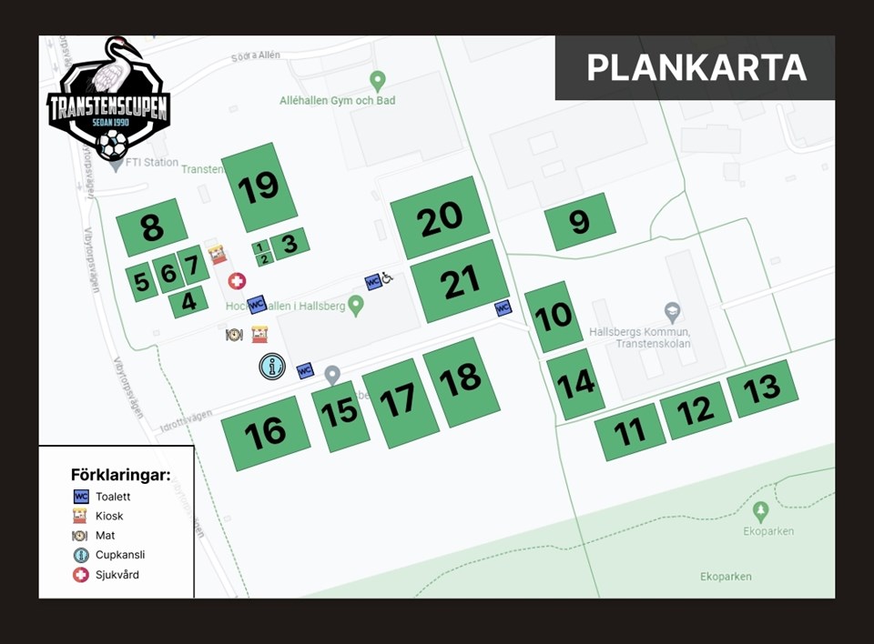 Adress transtensvallen: södra allén 2 Hallsberg Samling på plats lördag 9.00 ombytta. Ni som inte fått matchställ kan kontakta mig om ni vill ha dom innan lördag, annars tar jag med så att man kan byta om på plats. Bra att ha med förutom sig själv, den positiva inställningen och matchställ/fotbollsskor/benskydd: -Något varmt att ta på sig i paus. Tröja/jacka. -Vattenflaska -Ev mellanmål/Pengar/swish om man vill köpa något. GIF bjuder spelarna på mat, hamburgare+dryck som vi förbeställer till lunchtid. Meddela mig eventuell allergi under dagen så att jag kan lägga beställning imorgon fredag. Vi kommer ha med ett tält till "samlingsplats" för spelarna. Bifogar karta över spelplanerna. P8 spelar på plan 4-6-4-7 P10 på 15-15-14-11 Är det någon som behöver skjuts, lämna en kommentar här så löser vi det. Ses på lördag P-15 10 aug 2023 0kommentarer