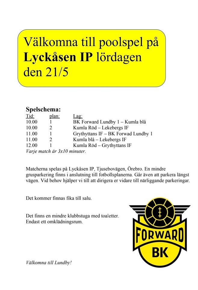 Tack för en rolig poolspelsdag alla GIF-kämpar! Hoppas att ni alla tyckte att det var kul att prova på lite matchspel. Ni var superduktiga! På lördag den 21/5 väntar nästa poolspel i Örebro (Lyckåsen IP) och vi vill gärna som sist, att ni lämnar en kommentar om ert barn vill/kan delta eller ej. Poolspelet börjar kl 10.00 och första match för oss är kl 11.00. Vi tränar som vanligt på onsdag kl 17.00 (söndagsträningen uteblir pga spel på lördagen) P-15 15 maj 2022 22kommentarer