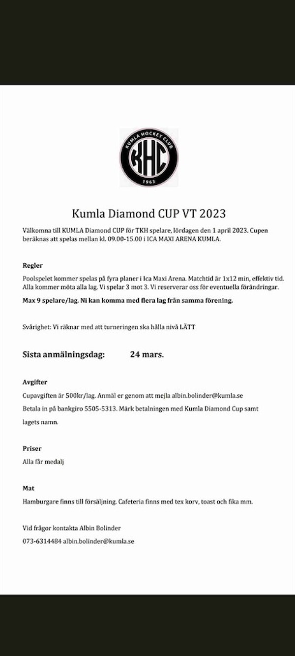 Här kommer lite info om cupen i kumla.