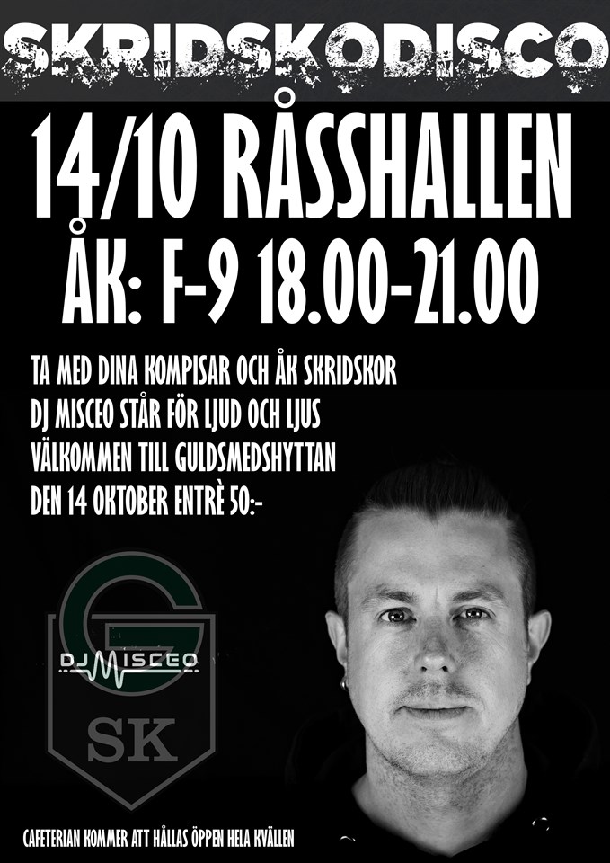 Välkommen till Råsshallen SKRIDSKODISCO 2022! DJ MISCEO är på plats och cafeterian håller öppen hela kvällen! 14/10 F-9 kl 18-21 entré 50:- ❤️💚 Hockeyskola Tjej 14 okt 2022 3kommentarer