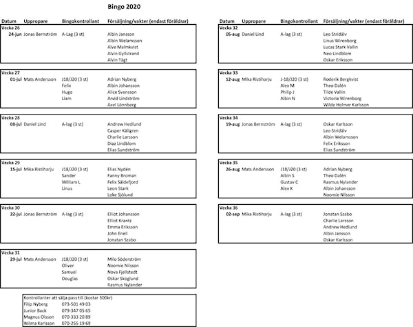 Om vi inte ses vid bingon så hoppas jag att ni får en härlig sommar och att vi syns i hallen till hösten!