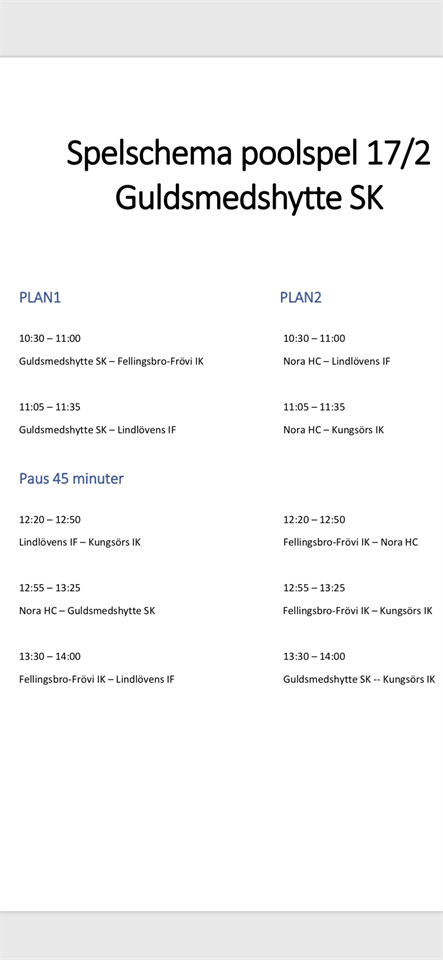 Spelschema poolspel Söndag 17/2 i Guldsmedshyttan