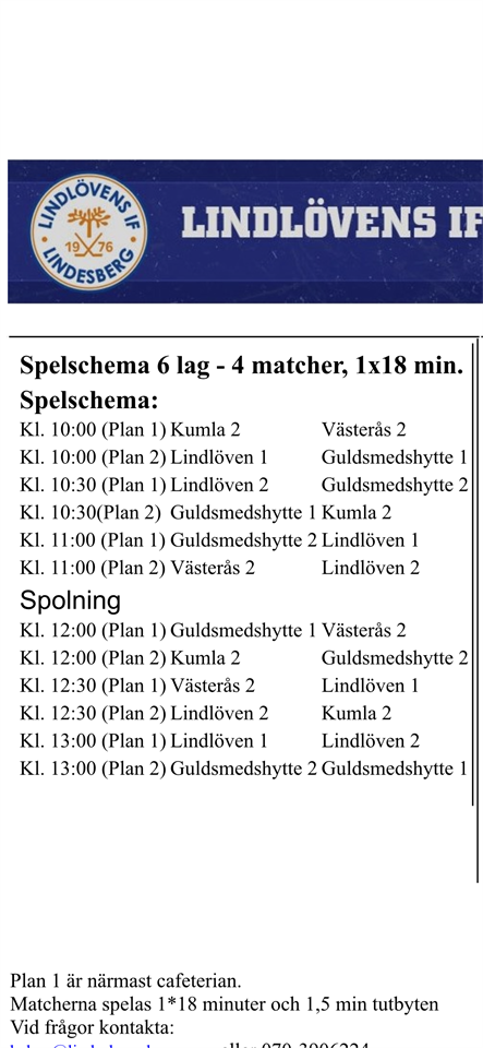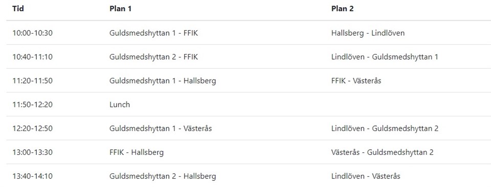 Hej Fick nu spelschemat och vi börjar spela med Lag 1 10.00 samling är då 09:15. Återkommer med lagindelning närmare helgen då vi vet hur alla är friska och så vidare. U-9 12 feb 2020 0kommentarer
