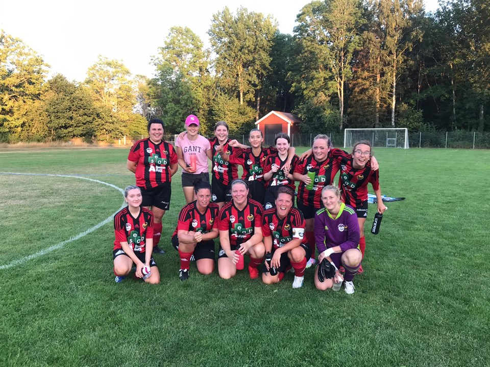 Äntligen, där satt den. Första vinsten för säsongen. Det blev en knallhård och mycket jämn match när vi tog emot Vissefjärda på Dackehed. Temperaturen låg runt 29 grader när matchen började, puh. Som tur var har vi veckan lyckats få in lite nya spelare i laget, så vi hade tillräckligt med avbytare för att ge järnet hela matchen ändå. Vi började lite försiktigt och avvaktande. Fullt naturligt eftersom det var första matchen med laget för flera spelare. Men efter 10-15 min var nervositeten borta och hela laget trummade på. Vissefjärda öppnade målskyttet med ett lite turligt mål efter en skottsnubblingsfint som gav öppet mål. Direkt efter målet var det skönt att se raka ryggar, småförbannade ansikten och ben som bara vill ge igen. Efter ytterligare några minuter var det vi som hade turen på vår sida när Moa räddade ett skott i stolpen och efter det enkelt kunde plocka bollen i famnen. Som sagt, det var två lag som inte höll igen och det blev ett par hårda dueller. Men spelarna i båda lagen bara tog ett andetag efter smällarna, ställde sig upp och var redo att dra igång spelet igen. Suveränt att se. Vissefjärdas målövertag höll sig halvleken ut. Vi snackade snabbt igenom positionerna och justerade lite i spelet i halvtidsvilan. När domaren blåste igång andra fanns det ingen stopp på oss. Jäklar vad vi dominerade, hela laget kände samma sak och lyfte sig ett par steg till. Kvitteringen kom efter ett mönsteranfall som avslutades av Ronja med ett stenhårt skott vid bortre stolpen. Några minuter senare kom Lisa loss på högerkanten och det fanns ingen på planen som kunde fånga henne. Säkert avslut till vänster om målvakten och vändingen var klar. Det bästa motståndarna fick till i andra halvlek var ett par skott högt över och en farlig hörna. Ska man vinna sin först match för säsongen så ska det vara så här. Ett gäng som blir starkare i motgång och som bara jobbar på och maler ner motståndarna. Imponerande moral! ricke