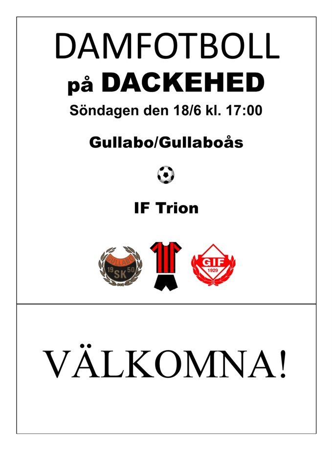 Då var det dags för sista hemmamatchen på vårsäsongen på Dackehed nu på söndag klockan 17:00 mot IF Trion. Missa inte det! Gullabo Sportklubb 14 jun 2023 0kommentarer