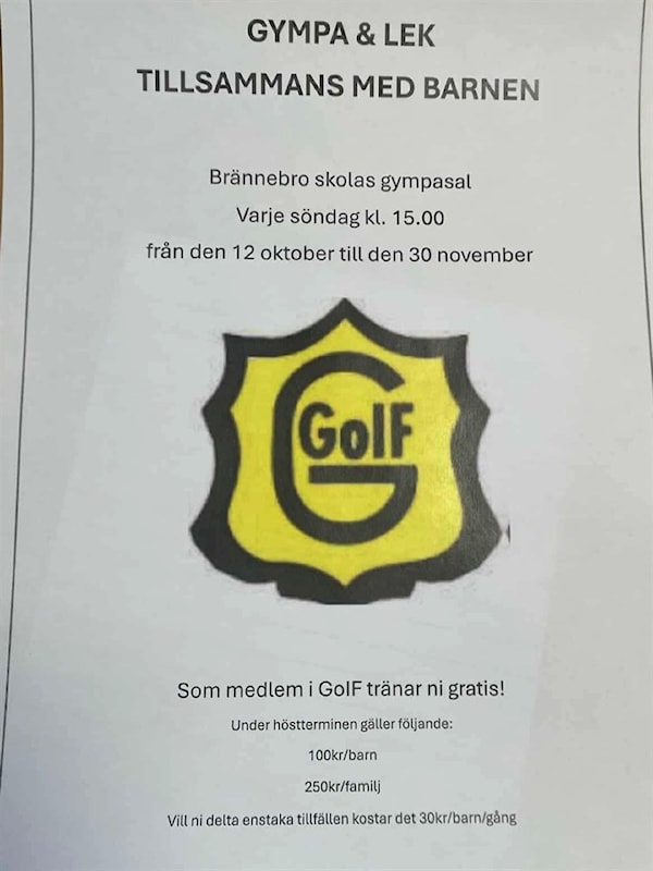 Barn 1-6 år är välkomna tillsammans med förälder till Brännebro skolas gympasal söndagar kl 15.00 från och med den 12 oktober till den 30 november.