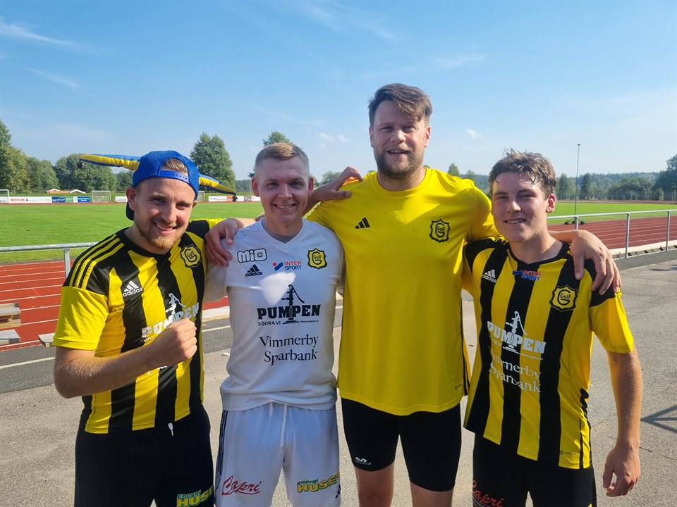 Igår vann A laget mycket välförtjänt borta mot Sävsjö. Idag var det dags för vårat ungdomslag på förmiddagen som vann med 5-4 mot Vimmerby och U laget på eftermiddagen borta mot Järnforsen. Där blev det också 3 poäng efter vinst med 3-1. Även dagens lag var en härlig mix av ungt och något äldre. Vi tar ledningen 1-0 efter 11 minuter genom Fille Pettersson. Matchen är jämn och i denna värmen så är det jobbigt för grabbarna. Flera spelade igår och 2 ungdomar på förmiddagen också. I minut 82 så rivs Petter ner i ett friläge och domaren blåser straff och visar det röda kortet för motspelaren. Edde går fram och lägger in straffen till 2-0. 3 minuter efter får Järnforsen en straff då domaren hittar en hands. Men Kevin i målet går åt rätt håll och räddar den. Dock kommer reduceringen några minuter senare på nick. Men på övertid så punkterar Albin matchen och gör 3-1 på en mycket fin framspelningen av Tapper där Albin kommer fri med målvakten och sätter den säkert. Vi hade som vanligt mycket roligt då våra tappra åldermän kommer in och kämpar och hjälper till så vi kan få ihop lag. Foto på våra målskyttar och straffräddaren. Herrar 8 sep 2024 0kommentarer