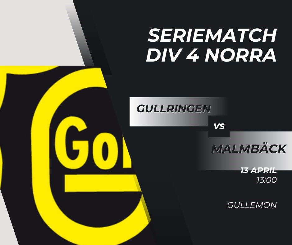 På lördag kl 13.00 är det äntligen seriepremiär! på Gullemon! Vi tar emot Malmbäcks IF som var med och krigade i toppen förra året så det är dags att ta tjuren i hornen direkt! Till våra sponsorer vill vi säga ett hjärtligt tack för stödet och era VIP-kort, matchbiljetter finns att hämta i entrén!
