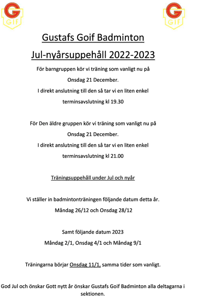 Se bild. Badminton Barn 20 dec 2022 0kommentarer