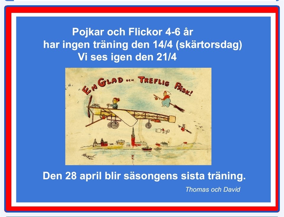 Vi tränar inte på skärtorsdag (14/4) P9/10 födda 2015-16 8 apr 2022 0kommentarer