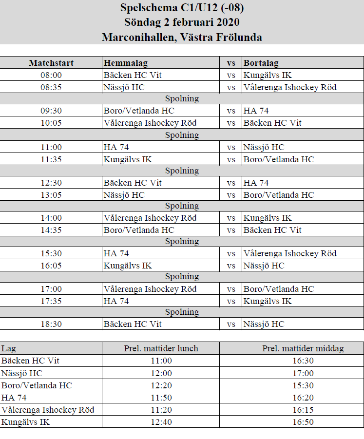 Hej! Spelschema har kommit inför slutspelet GP-pucken se foto. Första matchen är 09:30 så vi har samlingstid 08:15 vid ishallen. Vi återkommer med info om matbeställning. Team 08 2023-24 15 jan 2020 0kommentarer