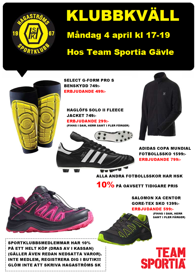 Måndagen den 4 april kl 17-19 är det HSK KLUBBKVÄLL hos Team Sportia Gävle. Passa på att handla dina sportartiklar och stöd samtidigt HSK. Många fina erbjudanden samt 10% på ett helt köp (gäller även redan nedsatta varor). A-lag Herrar 22 mar 2016 0kommentarer