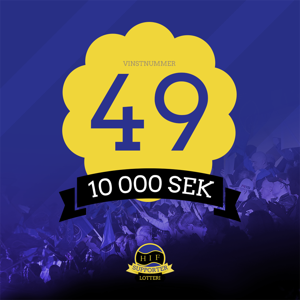 Vinstnumret denna månad blev andel nr 49! Stort grattis till 10 000 kr! Vinnaren presenteras här på vår hemsida, på våra sociala medier och i Hagunda IFs supportergrupp på Facebook. Just nu är det 169 andelar med i Supporterlotteriet. Nästa dragning i Supporterlotteriet är den 20 oktober. Vill du också vara med och stötta Hagunda IF och samtidigt ha chansen att vinna 10 000 kr? Kontakta då lotteriansvarig Erik Jällrud så berättar han mer. En andel kostar 100 kr per månad och det är dragning en gång i månaden. Vinnande andelar i Supporterlotteriet: 2019 December: Nr 86 2020 Januari: Nr 28 Februari: Nr 48 Mars: Nr 108 April: Nr 66 Maj: Nr 142 Juni: Nr 30 Juli: Nr 132 Augusti: Nr 108 September: Nr 38 Oktober: Nr 31 November: Nr 1 December: Nr 106 2021 Januari: Nr 22 Februari: Nr 115 Mars: Nr 159 April: Nr 135 Maj: Nr 16 Juni: Nr 56 Augusti: Nr 29 September: Nr 21 Oktober: Nr 189 November: Nr 93 December: Nr 85 2022 Januari: Nr 143 Februari: Nr 39 Mars: Nr 88 April: Nr 30 Maj: Nr 177 Juni: Nr 178 Juli: Nr 175 Augusti: Nr 154 September: Nr 49 Oktober: Kontaktuppgifter Erik Jällrud erik@hagundaif.se