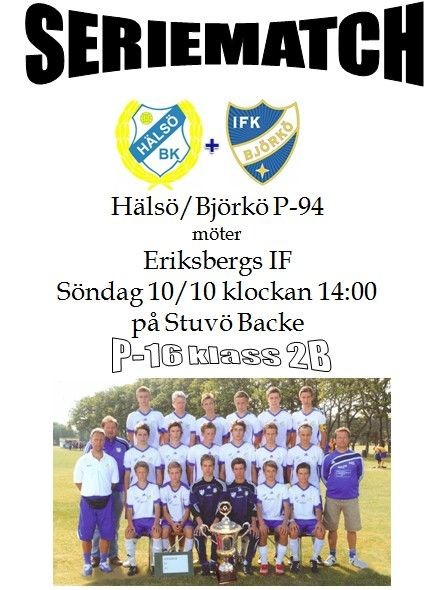 Fotbollsåret går nu mot sitt slut och det är nu dags för den sista seriematchen. Den spelas mot Eriksbergs IF nu på söndag 10/10 klockan 14:00 (samling kl 12:45) och den spelas hemma på Stuvö Backe. Laget som skall spela är följande: William Alexandersson Marcus Wiseman Petter Magnusson Rasmus Einarsson Joshua Berntsson Andreas Jernarp Erik Alexandersson Pontus Karlsson Johan Åstrand Emil Henricsson Magnus Lundgren Johan Forseström Andreas Forsmark Henrik Gustafsson Gustav Lundbäck - Efter denna matchen väntar sedan Sanktanslutspelet, där vi lottats mot Sävedalens IF i 8-delsfinal på onsdag 13/10 klockan 19:30 på Heden 3.