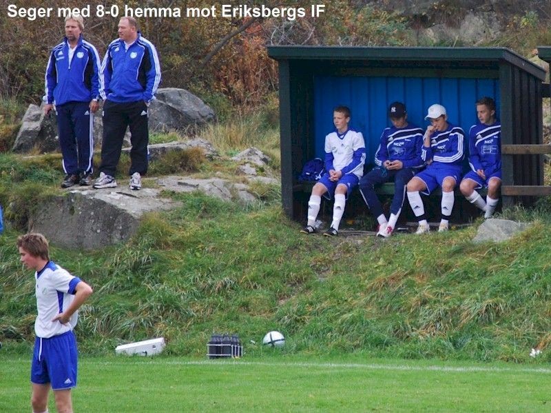 Hälsö/Björkö – Eriksbergs IF (8-0) Hälsö/Björkös mål gjordes av: 1-0 (7min) Marcus Wiseman (straff), 2-0 (20min) Marcus Wiseman, 3-0 (18min) Emil Henricsson, 4-0 (20min) Henrik Gustafsson, 5-0 (24min) Joshua Berntsson, 6-0 (60min) Andreas Jernarp, 7-0 (66min) Petter Magnusson och 8-0 (77min) Andreas Jernarp. - Mulet och småkallt denna oktobereftermiddag och det var dags för sista seriematchen för året och motståndet var Eriksbergs IF. Vi satte igång ett högre tempo redan från början av matchen och man såg ganska tidigt att vi var det klart bättre laget. 1-0 (7min) görs av Marcus Wiseman på straff, efter det att han själv blivit fälld innanför straffområdet. 2-0 (10min) kommer redan några minuter senare och Marcus får en snygg passning av Andreas Jernarp, rundar målvakten och slår säkert in bollen i mål. Matchen kändes redan avgjord efter 10 minuter, så det blev väl lite avslaget, men samtidigt så ville killarna vissa att man kunde spela snygg fotboll, men inslag av några fina prestationer, det var klacksparkar, vrickningar, snyggt passningsspel och ett flertal tunnlar framför allt av Magnus Lundgren, som drog ner applåder vid ett flertal tillfällen. Hela laget jobbade på och det såg stabilt och säkert ut. (18min) 3-0 Emil Henricsson nickar snyggt in bollen efter en hörna från Josh. (20min) 4-0 Henrik Gustafsson slår enkelt in bollen efter en smörpass i sidled från Marcus. Detta målet föregicks av mycket snyggt spel ända nere från backlinjen och det var 1-2 tillslag hela vägen upp till anfallet, som sedermera avslutas av Henke i mål. (24min) 5-0 Joshua Berntsson trycker in bollen efter passning från Emil Henricsson - 2:A HALVLEK Vi byter runt lite bland positionerna i halvlek och Forse, Petter, Adde och Pontus kommer in på planen och spelet fortsätter likt som den första halvleken, där vi pressar på och har ett klart spelövertag. (60min) 6-0 Andreas Jernarp efter pass från Johan Forseström och 7-0 (66min) Petter Magnusson som snurrar och dribblar på egen hand genom hela Eriksbergs försvar innan han gör mål. Målkalaset avslutas med 8-0 (77min) av Andreas Jernarp efter en retur där Petter var nära att göra mål. Stabil insatshela laget, men nu gäller det att ladda om batterierna till nästa match. - Nästa match är i Sanktan slutspelets 8-delsfinal mot Sävedalens IF på ONS 13/10 klockan 19:30 på Heden 3, kom å heja då. - LAGET SOM SPELADE MÅLVAKT William Alexandersson BACK Rasmus Einarsson Magnus Lundgren Erik Alexandersson Emil Henricsson MITT1 Johan Åstrand Gustav Lundbäck MITT2 Marcus Wiseman Andreas Jernarp Joshua Berntsson TOPP Henrik Gustafsson RESERVER Johan Forseström Petter Magnusson Andreas Forsmark Pontus Karlsson