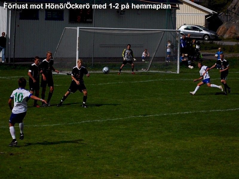 Hälsö/Björkö - Hönö (1-2) Hälsö/Björkös mål gjordes av: 1-2 (70min) Andreas Jernarp - Hemmamatch mot Hönö/Öckerö på Stuvö Backe och de yttre förutsättningarna var perfekta, solsken, skapligt med publik och i högtalarna strömmade musiken ut och Magnus hade laddat caféet. Domare Ulf Liljekrantz blåste igång matchen och vi förväntade oss en jämn spännande match, samma som senast på Heinövallen, då vi lyckades vinna med knappa 5-4, efter att ha legat under med 2-0. Matchen startade med mycket kamp på mittplan och inte så mycket ordnat spel. (7min) och vi har ett fint anfall på högerkanten där Andreas Jernarp tar sig förbi försvarare och slår ett bra inlägg efter backen, där Josh slänger sig fram och är nära att trycka in bollen. (8min) Bollen går till Forse som bryter in mot mitten och får till ett bra långskott, men Mattias i Hönö/Öckerös mål är välplacerad och räddar. - (23min) Djupledspass från Hönö/Öckerö och friläge mot William i målet, som rusar ut och räddar friläget men han tar tyvärr med händerna utanför straffområdet (naturlig reflexräddning) och domare Ulf Liljekrantz drar efter en stunds fundering upp det röda kortet och Wille blev utvisad. Åstrand på bänken fick hoppa in och dra på sig målvaktströjan och det blev snabba beslut hur lagdelarna skulle formeras och det tog väl en stund på planen innan alla hittade sina positioner igen och mittfältet lyckades inte ta tillräckligt stort ansvar i det defensiva arbetet, vilket gjorde att Hönö/Öckerö kom igenom i några farliga lägen och redan i den (27min) gör man mål 0-1 efter en snabb omställning och vårt duktiga mittbackspar denna dag Erik och Magnus, kunde inte göra så mycket när inte vårt mittfält var med nere och stöttade. Redan 5 minuter senare kom nästa kalldusch (32min) 0-2 efter slarv i försvarsarbetet. Vi kämpade dock på och när halvtidsvilan kom gällde det att formera trupperna rätt igen, och trots en man mindre, så måste vi ge allt för att kunna skapa några lägen, ett mål och det skulle ändå bli nerv i matchen, kämpa på killar. 2:A HALVLEK Inte så mycket i detalj som vi skriver här, vi kämpade på och skapade några bra lägen, det gjorde även Hönö/Öckerö i den 2:a halvleken, tyvärr kunde väl inte alla våra spelare hålla fokus på att göra en så bra insats som möjligt trots underläge, utan fokuserade på fel saker. Men flertalet bet ihop och gjorde ändå en bra insats trots en man mindre på plan. Stort plus denna dag till vårat mittförsvar Erik och Magnus som ändå gjorde en stark insats och bröt flera Hönö/Öckerö anfall. Jernarp och Forse kämpade och sprang och hade bra tempo i löpningarna och bra vilja. Hönö/Öckerö kom dock lite för enkelt runt på våra kanter under matchen och mycket berodde väl detta på att vi var en man mindre, så att inte backlinjen fick tillräcklig stöttning i det defensiva arbetet. Press/understöd, men saknas understödet så blir pressen nästan meningslös. I slutet av matchen kämpar vi dock ändå på och i den (70min) kommer reduceringen, Forse får bollen och spelar vidare till Gustav som snyggt spelar fram Jernarp, som driver in i plan och genom ett mäktigt långskott av gör 1-2 och med 10 minuter kvar, kanske vi kunde skapa några lägen till. Det gör vi också, men tyvärr så ger inget av dessa utdelning. - Hönö/Öckerö håller undan och vinner skärgårdsderbyt med 1-2, det är bara att bita i det sura äpplet och knyta näven i fickan och komma igen och grabbar, lika viktigt som det är att vara en god vinnare, lika viktigt är det att vara en god förlorare. Fotografierna från matchen blev tyvärr helt svarta (fel inställning på kameran) så det var inte mycket att lägga in tyvärr. Nästa match är mot Mossens BK och även det hemma på Stuvö Backe på SÖN 5/9 klockan 17:00