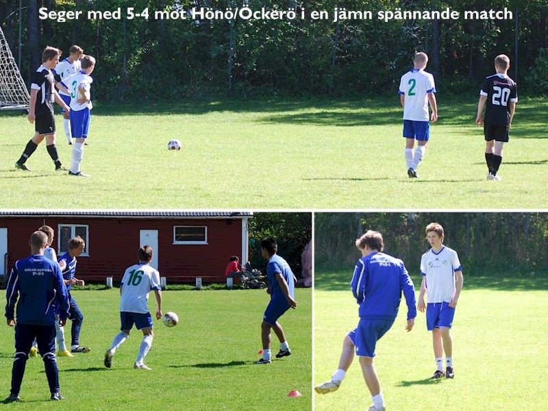 Hönö/Öckerö - Hälsö/Björkö (4-5) Hälsö/Björkös mål gjordes av: 2-1 (41min) Henrik Gustafsson, 2-2 (55min) Jesper Hidetun, 3-3 (59min) John Samuelsson, 3-4 (61min) John Samuelsson och 3-5 (75min) Jesper Hidetun. - 5:e seriematchen och bortamatch mot Hönö/Öckerö på Heinövallens ovanligt fina gräsplan och frågan var vilket lag som hade den bästa tändningen inför denna drabbning. Detta blev ett derby som nästan hade allt, många mål, fightning spirit, annorlunda mål, kamp, gula kort, snygga spelsekvenser, vilja, 2 halvlekar med olika karaktär och för vår del framför allt en seger att vi aldrig ger upp, allt kan hända i en match. - Hönö/Öckerö tog kommandot och vi var inte med i matchen för 5 öre, vi var inte ens tvåa på bollen och Hönö/Öckerö vann i princip varenda närkamp och redan efter (6min) så fick vi Hönö/Öckerö en hörna, som slogs på den bortre stolpen och man nickar in 1-0, där hängde inte våra försvarare med. Vi repar dock mod och skapar några halvchanser och i en av dessa får tyvärr Andreas Forsmark (vår 95:a) ett skott rätt i ansiktet av vår egen spelare och blir däckad, så att han tvingas bryta matchen. - (23min) Ännu en hörna och ännu en gång är Hönö/Öckerö klart starkare än oss på de fasta situationerna, här behöver vi nog träna oss betydligt mer, hur vi skall agera på hörnor emot oss, för återigen tappar vi markeringen och Hönö/Öckerö kan ta ledningen med 2-0, nu såg det riktigt uselt ut. Vi körde fast i deras mittförsvar eller på deras mittmittfält nästan varje gång vi försökte spela upp bollen. Detta såg ut som den sämsta halvleken i år, men kanske var det också för att Hönö/Öckerö var så taggade och låg tätt på oss i varenda närkamp, men då borde vi kunna röra oss betydligt mer utan boll, vilket man inte kan påstå att vi gjorde i den fösta halvleken i alla fall, tillräckligt alltså. 2:A HALVLEK Det blev en klar tempoökning från våra grabbar i den 2:a halvleken och lite omstrukturering i laget för att få mer fart på kanterna, eftersom vi körde fast i mitten i den första halvleken. Ut med Marcus och Forse på varsin sida och Henke i mitten, detta gjorde effekt nästan omgående. (1min) Henke hypersnabb genom försvaret och trycker in reduceringen 2-1, nu var vi taggade och spelet blev allt bättre från våran sida, vi hade nu större delen av spelet. (15min) 2-2 Jesper Hidetun gör mål efter passning från Johan Forseström. - Men Hönö/Öckerö replikerar blixtsnabbt i anfallet efter (16min) 3-2 och man tar åter ledningen efter slarv i vår backlinje, inspel från kanten och mål. Nu böljade spelet fram och tillbaka och stundtals var det irriterat på planen. Både Jesper och Marcus drar på sig onödiga varningar och kanske hade domare Kaj en för lite hög nivå på frisparkarna åt bägge hållen, för spelet var tufft. (19min) 3-3 John Samuelsson som nyligen kommit in på mittfältet får bollen och drar på ett långskott från nästan halva plan, en höjdare som Edvard i Hönö/Öckerös mål nästan var på men tappade in (fick nog även solen i ögonen, glömde kepsen) och bara någon minut senare tar vi ledningen för första gången, ännu ett turmål kan tyckas (21min) John Samuelsson drar på ännu ett långskott och bollen går under målvakten, nu har vi flyt, men samtidigt är det ändå vi som drar upp tempot och för spelet, även om matchen är hur jämn som helst. - (35min) 3-5 och Jesper Hidetun får en passning från Josh efter fint spel även från Åstrand på vänsterkanten och Jesper pangar in bollen i mål. I slutet av matchen (39min) kommer Hönö/Öckerö i ett snabbt anfall där vi inte riktigt är på tårna och trycker in reducering 4-5. Avspel och domaren blåser att matchen är slut. Detta var en derbymatch med mycket vilja och mycket kämpande från bägge lagen, i första halvlek var vi helt borta, men vi lyfte oss i den andra halvleken. Detta var en match som kunde slutat hur som helst, vinst, oavgjort eller förlust, men det blev vi som hade turen på vår sida denna dag och vi önskar givetvis Hönö/Öckerö lycka till i fortsättningen av serien och med den inställningen borde laget vara med i toppen och fightas, vi ses till hösten igen LÖR 28 augusti klockan 12:30 på Björkövallen då bägge lagen möts igen, då som en förmatch till IFK Björkö A-lag. - Nu väntar träningar ONS 26/5 och FRE 28/5 på Hälsö, se i kalendern - LAGET SOM SPELADE: MÅLVAKT Andreas Johannesson BACKAR Pontus Karlsson Emil Henricsson John Samuelsson Petter Magnusson MITT1 Erik Alexandersson Gustav Lundbäck MITT2 Andreas Forsmark Marcus Wiseman Joshua Berntsson TOPP Johan Forseström RESERVER Jesper Hidetun Henrik Gustafsson Rasmus Einarsson Johan Åstrand
